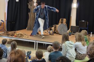 Am Freitag, 23.01.2026 wurde die Aula unserer Schule in einen unwiderstehlichen Zauber aus magischen Worten und Klängen eingetaucht. Über das Brucker Forum ist es uns gelungen, den afkrikanischen Künstler Tormenta Jobarteh, einen mehrfach prämierter Grioten, zu uns an die Grundschule nach Aufkirchen zu lotsen.