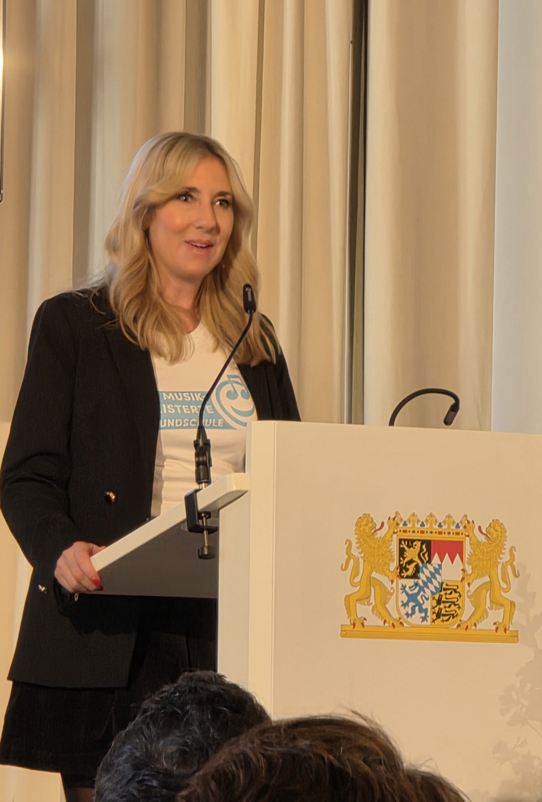 In Ihrer Ansprache gratulierte Kultusministerin Anna Stolz herzlich mit folgenden Worten: „Mit beeindruckendem Engagement, Kreativität und Ausdauer haben die ausgezeichneten Schulen musikalische Bildung fest in ihrem Schulalltag verankert. Sie setzen damit ein starkes Zeichen für die Bedeutung der Musik an den bayerischen Schulen. Unsere Schulen sind Orte, an denen die Kinder ihre Stimmen und Instrumente zum Klingen bringen und im gemeinsamen Rhythmus Selbstvertrauen und Teamgeist entwickeln. Deshalb würdigt die heutige Zertifizierung nicht nur ein erfolgreiches Konzept, sondern den täglichen Einsatz für eine lebendige kulturell-künstlerische Bildung. Dafür spreche ich den Schulen meine höchste Anerkennung und meinen persönlichen Dank aus.“